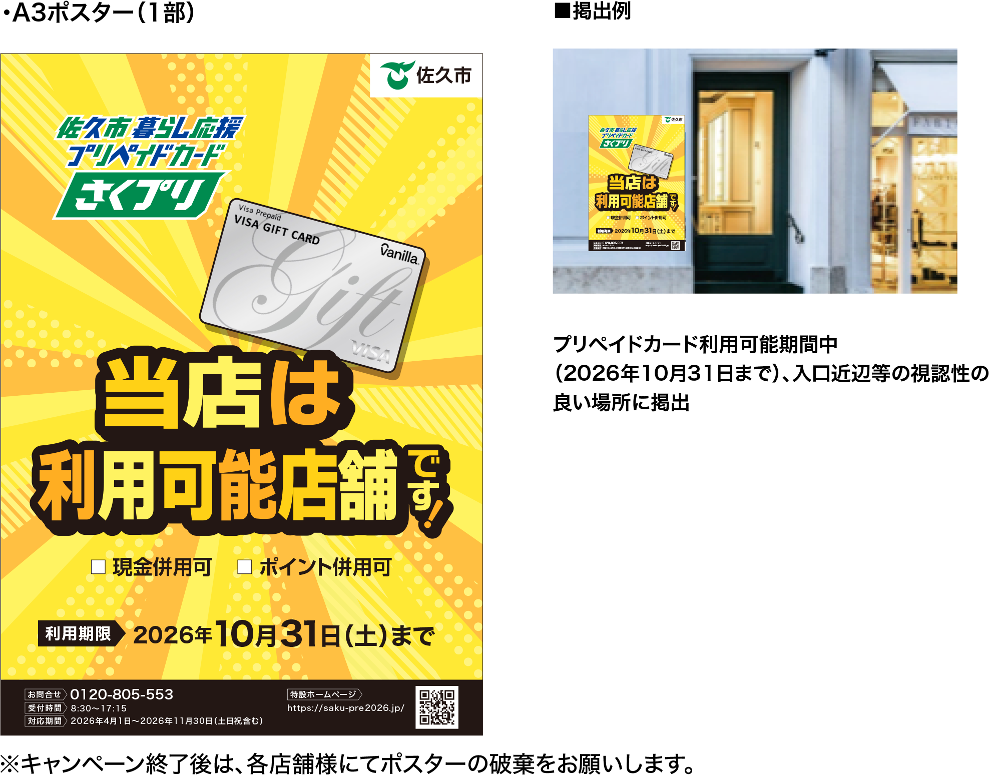 店頭掲示ポスターは、カード利用可能期間中、お客様に見えるようにご掲示ください。